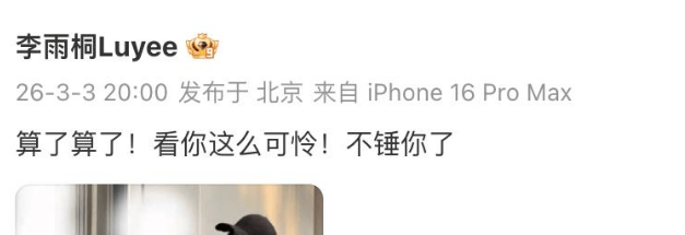李雨桐呢?发完“算了算了,看你这么可怜,不锤你了”配图薛之谦之后,也没了下文。网友纷纷化身段子手:“所以你这次的最终目标是谢娜张杰吗?”
