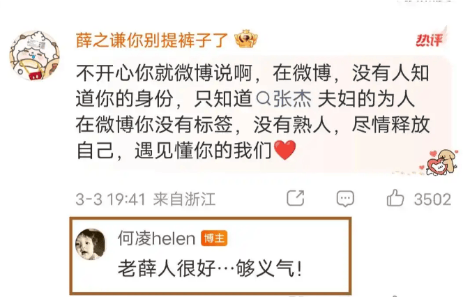更精彩的是,自称张杰前助理、前经纪人的账号也冒出来了,一个说“做张杰助理是人生污点”,另一个说“老薛够义气”。张杰的第一任经纪人何凌也补了一刀,评论区只夸薛之谦,就是不提张杰半个好字。