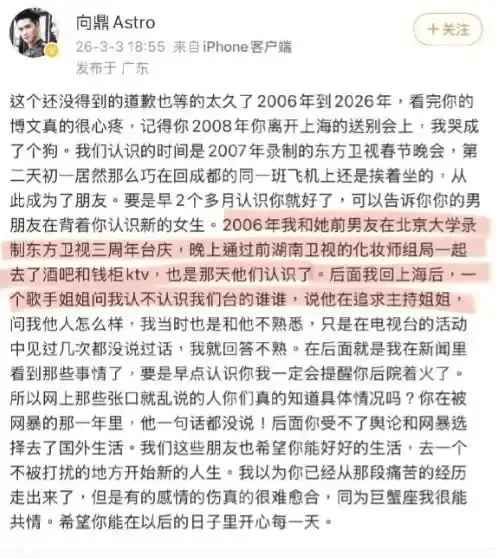 如果说段曦是“人证”,那当年《加油好男儿》的选手向鼎就是“监控录像”。他直接下场作证,说2006年张杰和段曦还在一起时,就在酒吧KTV认识了谢娜。这波“时间管理大师”的指控,让#张杰单身时间线#瞬间成了全网最难的逻辑推理题。